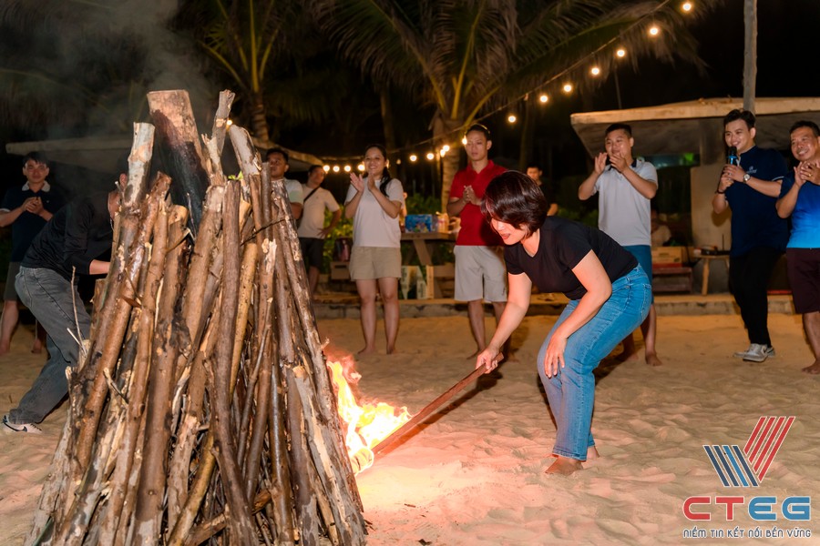 Khi ánh hoàng hôn buông xuống, không gian đêm được thắp sáng bằng ánh lửa trại bập bùng và những câu chuyện sẻ chia chân thành. Đêm hội lửa trại là nơi mọi khoảng cách được xóa nhòa, để lại những khoảnh khắc đáng nhớ với tiếng cười, những trò chơi mini game vui nhộn và cả những phút giây lắng đọng. Mỗi thành viên đều được lắng nghe và được là chính mình – một mảnh ghép không thể thiếu của tập thể CTEG.